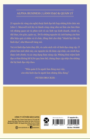 21 Nguyên Tắc Vàng Của Nghệ Thuật Lãnh Đạo kết hợp những kiến thức mà John C. Maxwell tích luỹ từ thành công cũng như sai lầm của bản thân với những quan sát và phân tích về các lĩnh vực kinh doanh, chính trị, thể thao, tôn giáo, quân sự… Đó là những nguyên tắc ảnh hưởng một cách căn bản tới hiệu quả cá nhân và tổ chức, đồng thời cho thấy “thành bại đều do lãnh đạo”, như Maxwell từng nói.