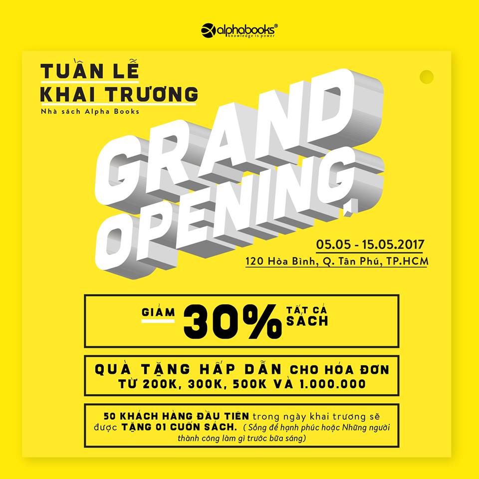 Trong tuần khai trương, 05/5 – 15/5, nhà sách Alpha Books thân gửi tới bạn đọc nhiều chương trình khuyến mại hấp dẫn: