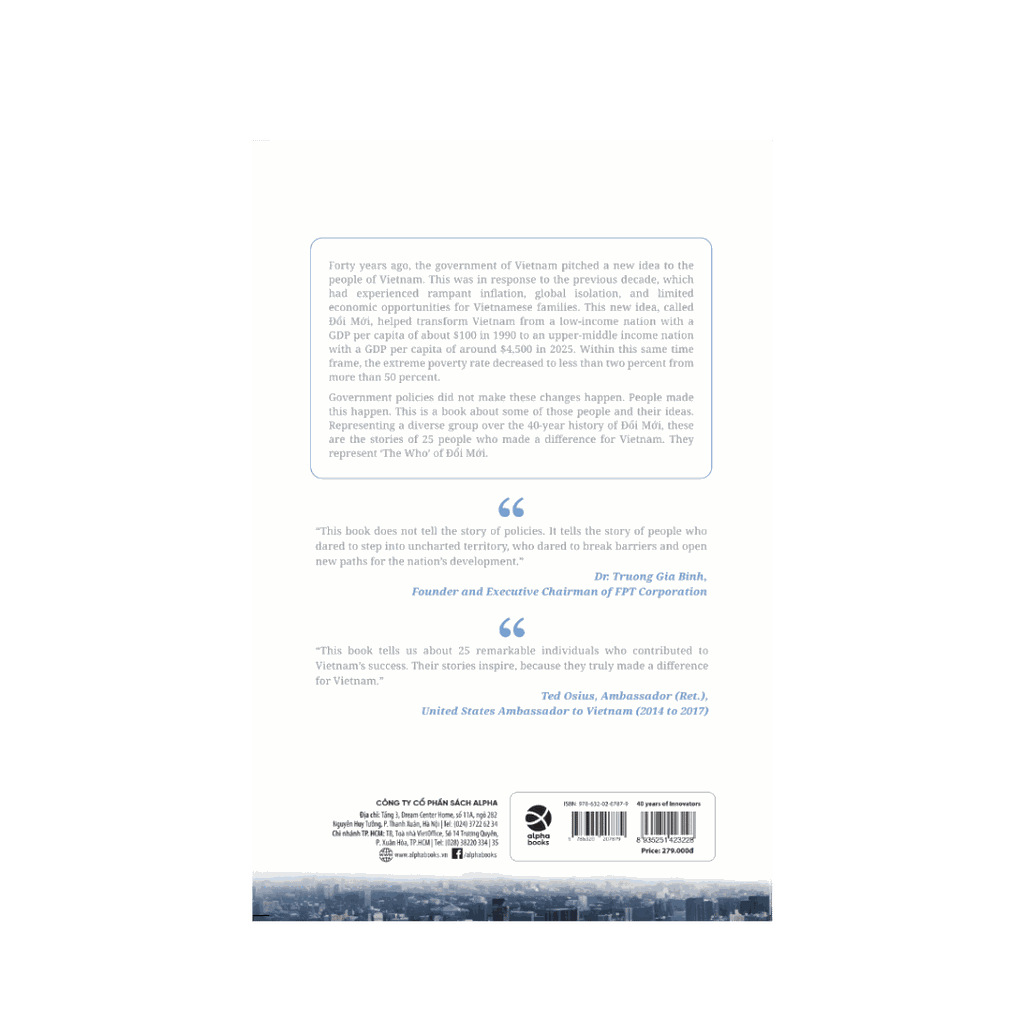 40 Years of Innovators - The personal stories of 25 individuals who have made a difference for Vietnam is a compelling narrative chronicling Vietnam’s extraordinary transformation following the 1986 Doi Moi (Renovation) reforms.