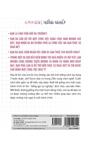 Hãy đi tìm câu trả lời cho những câu hỏi trên bằng cách áp dụng 7 bước được Jeff Goins đưa ra trong Cẩm Nang Chọn Nghề. Cuốn sách đơn giản và dễ hiểu này được thiết kế giống như một cuộc hành trình đi tìm "tiếng gọi sự nghiệp" đích thực của bản thân. Mỗi bước đường giống như một trạm dừng chân, mà tại đó bạn sẽ có được những hướng dẫn cụ thể hơn nhằm giúp bạn sớm thu được những trái ngọt ở cuối hành trình.