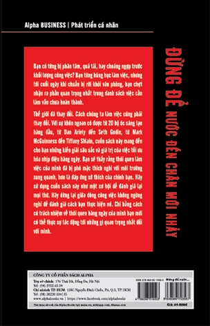 Bạn có từng bị phân tâm, quá tải, hay choáng ngợp trước khối lượng công việc? Bạn từng hùng hục làm việc, nhưng tới cuối ngày khi chuẩn bị rời khỏi văn phòng, bạn chợt nhận ra phần quan trọng nhất trong danh sách việc cần làm vẫn chưa hoàn thành. Thế giới đã thay đổi. Cách chúng ta làm việc cũng phải thay đổi. Với sự khôn ngoan có được từ 20 bộ óc sáng tạo hàng đầu, từ Dan Ariely đến Seth Godin, từ Mark McGuinness đến Tiffany Shlain, Đừng Để Nước Đến Chân Mới Nhảy mang đến cho bạn những kiến giải sâu sắc và giá trị của việc tối ưu hóa nhịp điệu hàng ngày.