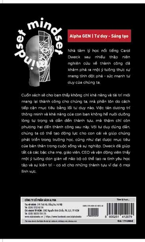 Mindset - Tâm Lý Học Thành Công sẽ cho bạn thấy không chỉ khả năng và tài trí mới mang lại thành công cho chúng ta, mà phần lớn do cách tiếp cận mục tiêu bằng lối tư duy nào. Việc tán dương trí thông minh và khả năng của con bạn không hề nuôi dưỡng lòng tự trọng và dẫn đến thành tựu, mà thậm chí còn phương hại đến thành công sau này. Với tư duy đúng đắn, chúng ta có thể tạo động lực cho con cái và giúp chúng phát triển trong trường học, cũng như đạt được mục tiêu của bản thân trong cuộc sống và sự nghiệp. Dweck cho tất cả các bậc cha mẹ, giáo viên, CEO và vận động viên thấy một ý tưởng đơn giản về não bộ có thể tạo ra tình yêu học tập và sự kiên trì – cơ sở cho những thành tựu vĩ đại ở mọi lĩnh vực.