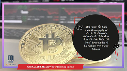 Một nhầm lẫn khái niệm thường gặp về bitcoin là ví bitcoin chứa bitcoin. Trên thực tế, ví chỉ chứa khóa. Các “coin” được ghi lại và blockchain trên mạng bitcoin.