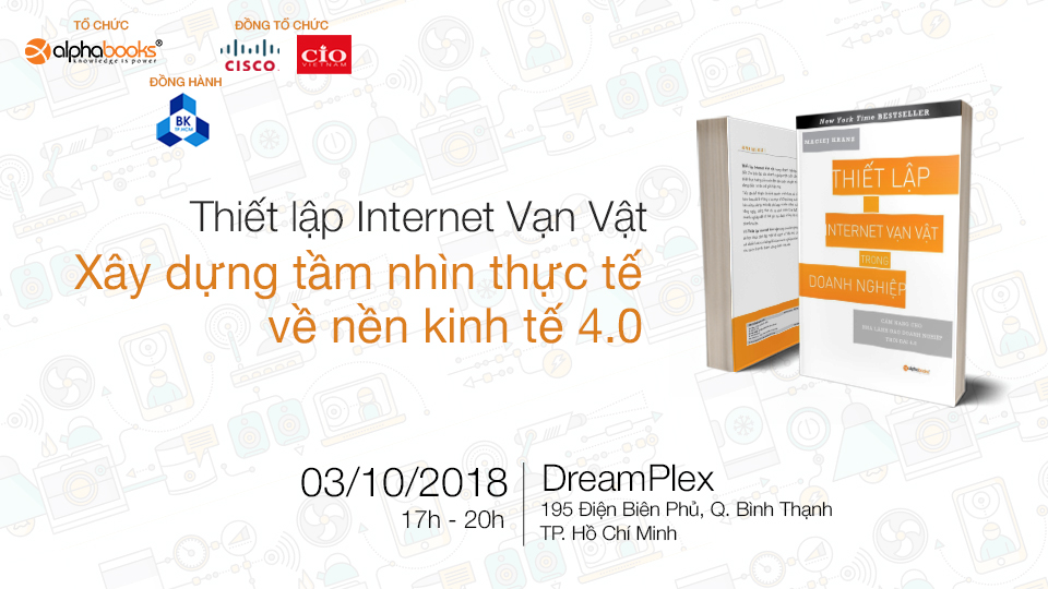 Trên đây là 5 câu hỏi mà bất cứ ai đang tìm hiểu về xu thế chuyển đổi của thế giới đều không thể bỏ qua. Nhằm giúp mọi người trang bị thêm những kinh nghiệm từ người đi trước cũng như tìm lời giải cho các câu hỏi trên . Vào ngày 03/10/2018, Alphabooks, Cisco & CIO Vietnam tổ chức sự kiện với chủ đề: “THIẾT LẬP INTERNET VẠN VẬT: XÂY DỰNG TẦM NHÌN THỰC TẾ NỀN KINH TẾ 4.0”