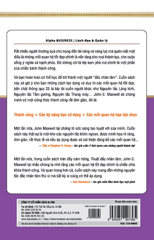Và bạn hoàn toàn có thể học để trở thành một người “đắc nhân tâm”. Cuốn sách này sẽ gợi ý cho bạn những cách tạo dựng và duy trì các mối quan hệ tốt đẹp, bền chặt thông qua 25 bí kíp lôi cuốn người khác như Nguyên tắc Lăng Kính, Nguyên tắc Tấm gương, Nguyễn tắc thang máy… John C. Maxwell sẽ chứng minh có một công thức thành công rất đơn giản, đó là: