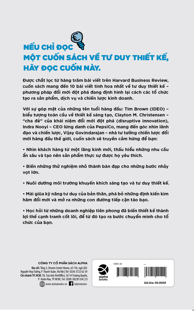Cuốn sách Tư duy thiết kế trong kinh doanh, tuyển chọn từ 10 bài viết xuất sắc nhất của Harvard Business Review, mang đến cho bạn một hệ tư tưởng thực tiễn để đổi mới sáng tạo, phát triển sản phẩm/dịch vụ, cải tiến tổ chức và tạo ra giá trị khác biệt cho người dùng.