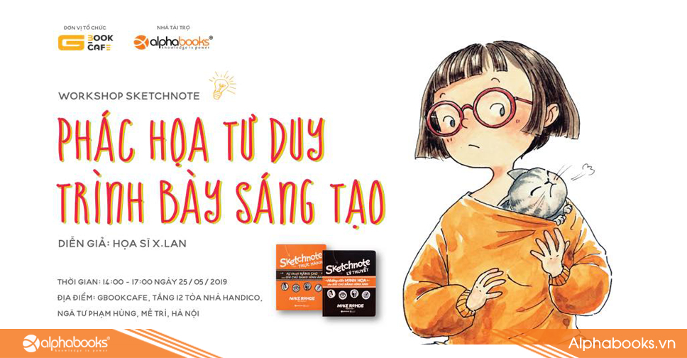 Là một trong những kỹ năng mới đang phát triển mạnh mẽ, trở thành một trào lưu nổi bật của giới trẻ, có tính ứng dụng cao, Sketchnote - Phương pháp tư duy bằng hình để ghi chép kiến thức, thông tin nhằm nắm bắt những ý tưởng lớn một cách sáng tạo và đầy cảm hứng. Tháng 4 vừa qua Alpha Books đã cho ra mắt độc giả cả nước phiên bản tiếng Việt của bộ sách Sketchnote gồm 2 cuốn: Sketchnote Lý Thuyết và Sketchnote Thực Hành. Được sự đón nhận nhiệt tình, bộ sách đã tái bản ngay sau 1 tháng phát hành. Trong quá trình phát hành bộ sách Alpha Books nhận được một số chia sẻ về trở ngại đầu tiên khi bắt đầu tìm hiểu về Sketchnote là suy nghĩ cho rằng mình không có khả năng vẽ, tạo ra các hình ảnh. Để phá vỡ định kiến này Alpha Books phối hợp cùng GBookCafe tổ chức Workshop Sketchnote - Phác họa tư duy, trình bày sáng tạo với sự đồng hành và hướng dẫn từ họa sĩ trẻ tài năng Xuân Lan.